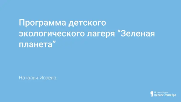 Программа «Летний детский экологический лагерь «Зеленая планета» носит научно-исследовательский, познавательный, образовательный характер. Программа рассчитана на детей в возрасте 12–15 лет. Продолжительность программы 14 дней. Ценность работы заключается в том, что в рамках программы разрабатывается реальное участие детей в организации своей жизни, освоение и реализация своих прав и обязанностей по отношению к самому себе, своей семье, родному краю, Отечеству.