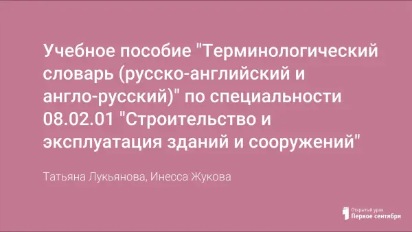 Учебное пособие "Терминологический словарь (русско-английский и англо-русский)" по специальности 08.02.01 "Строительство и эксплуатация зданий и сооружений"