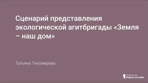Одной из форм экологического воспитания является вовлечение учащихся в просветительскую работу и пропаганду экологических идей через участие в экологической агитбригаде. Сценарий агитбригады отражает систему экологического воспитания в образовательном учреждении.