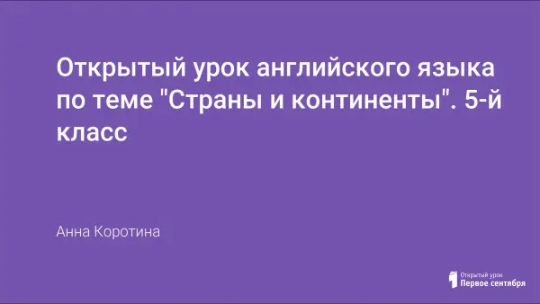 Занятие по английскому языку проводится с целью обобщения и закрепления материала по теме "Страны и континенты", развития навыков говорения, аудирования, чтения, письма.