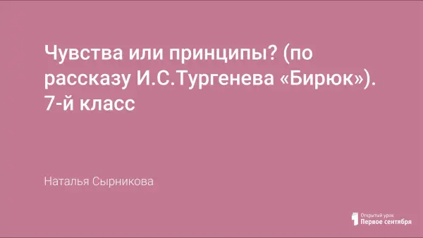 Цель урока: формировать умение анализировать образ главного героя рассказа. Задачи урока: выявить, как соотносятся между собой внешний облик и внутренний мир центрального героя рассказа И.С.Тургенева «Бирюк»; аргументировать собственное мнение.