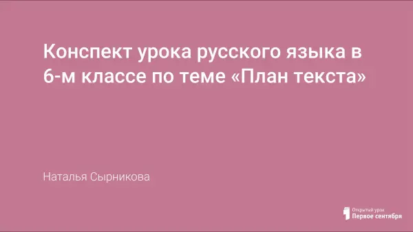 Цели урока: вспомнить материал по теме «План текста»; составлять план готового текста; составлять план и по нему в дальнейшем формировать новый текст.