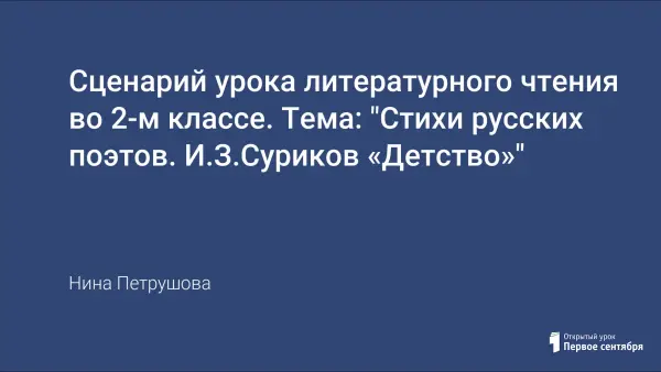 Цели: создать условия для восприятия обучающимися литературного произведения, понимания текста и специфики его литературной формы, формировать действие контроля, действие оценки и самооценки обучающихся. Задачи: учить понимать стихи о детях русских поэтов, определять тему, воспитывать чувство восхищения картинами родной природы и стихами поэта; учить выражать своё отношение к прослушанному произведению, анализировать стихотворение, овладение навыками смыслового чтения; формировать осознанное построение речевого высказывания в соответствии с задачей, учить читать стихотворение выразительно.