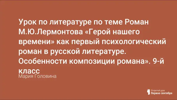 Цели урока: обзор и обсуждение содержания романа; анализ особенностей композиции романа; выявление новаторства Лермонтова; доказательство того, что произведение является первым психологическим романом в русской литературе.