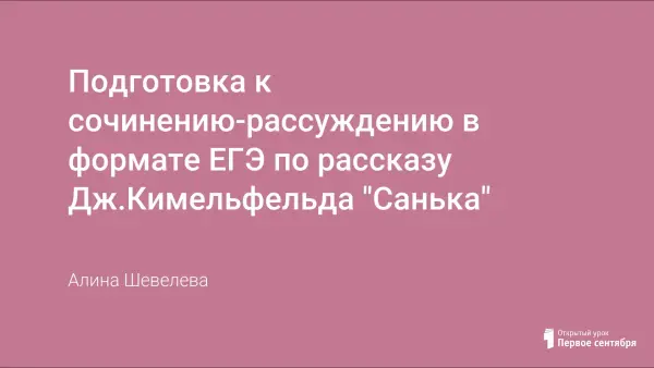 Основная идея работы – на основе рассказа Д.Кимельфельда «Санька» структуировать материал для сочинения-рассуждения в формате ЕГЭ. Первая группа учащихся определяет проблемы, поднимаемые в рассказе. Пишет разные виды вступлений. Вторая группа анализирует текст, создает комментарий и находит позицию автора. Третья группа подбирает аргументы на разные проблемы. Затем части сочинения собираются. Материал редактируется, делаются выводы.