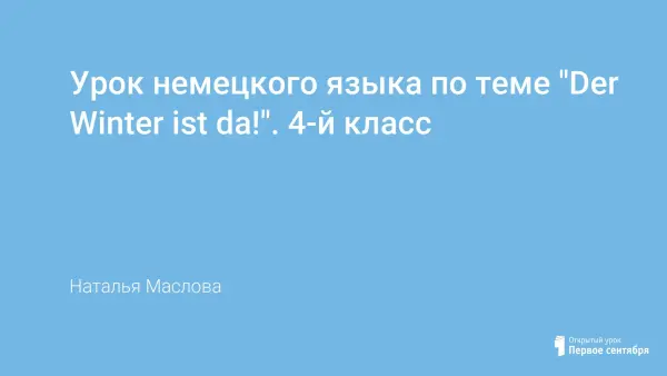 Урок немецкого языка по теме «Der Winter ist da!» разработан в соответствии с ФГОС НОО на основе УМК И.Л. Бим «Шаги» и предназначен для учащихся 4-го класса. Урок является комбинированным и нацелен на создание условий для актуализации изученного материала и усвоения новой лексики. Учебные задания носят дифференцированный характер, что позволяет одновременно вовлекать в работу учащихся с разным уровнем освоения учебного материала.