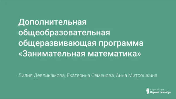 Дополнительная общеобразовательная общеразвивающая программа естественно-научной направленности стартового уровня, рассчитанная на 72 часа в течении 1 года для обучающихся 11–12 лет. Особое внимание в программе уделяется развитию умения логически мыслить, делать выводы, различным методам и алгоритмам решения задач, созданию условий для повышения мотивации к обучению математике.