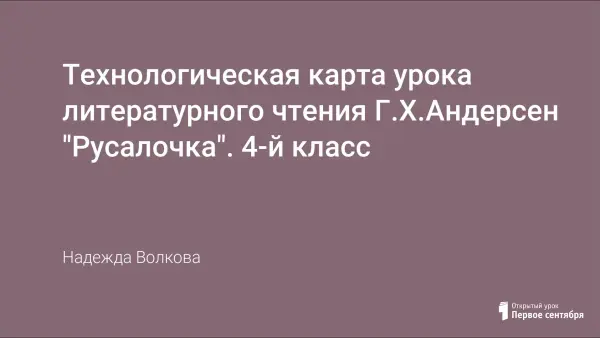 Цель урока: создание условий для формирования представлений детей о творчестве Г.Х.Андерсена и о литературном герое.
