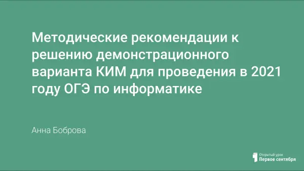 Демонстрационный вариант предназначен для того, чтобы дать возможность любому участнику экзамена и широкой общественности составить представление о структуре экзаменационной работы, количестве и форме заданий, а также об их уровне сложности. Приведённые критерии оценивания выполнения заданий с развёрнутым ответом, включённые в демонстрационный вариант экзаменационной работы, позволят составить представление о требованиях к выполнению этих заданий. Эти сведения дают будущим участникам экзамена возможность выработать стратегию подготовки к сдаче экзамена по информатике в 2021 году.