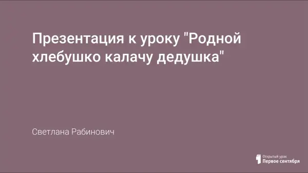 Представлена презентация к уроку "Родной хлебушко калачу дедушка".
