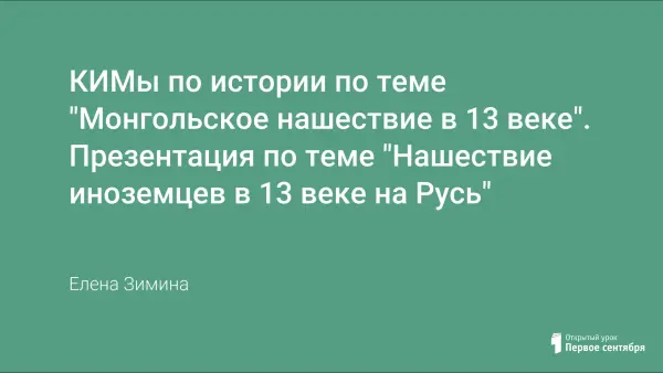 КИМы по истории по теме "Монгольское нашествие в 13 веке".