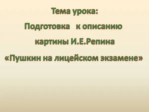 Подготовка к описанию картины И.Е. Репина "Пушкин на лицейском экзамене"