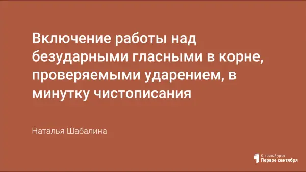 Правописание безударных гласных в корне по-прежнему остается для ребят одной из самых сложных тем. Бедный словарный запас детей не позволяет верно и быстро подбирать родственные слова для проверки безударной гласной. Этот пробел можно устранить, если ввести эту тему в минутки чистописания и сделать эту работу регулярной. После знакомства с этой орфограммой и способами проверки, включаем ее отработку в этап чистописания. Выполняя развивающее задание, ребята определяют, какую букву мы пишем на чистописании. А отрабатываем написание нужной буквы или соединения букв, используя ряд однокоренных слов. Закрепляем этот этап работой над пословицей или поговоркой.