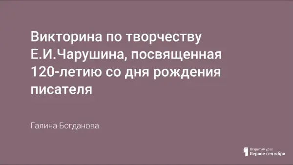 Представлена викторина по творчеству Е.И.Чарушина, посвященная 120-летию со дня рождения писателя.