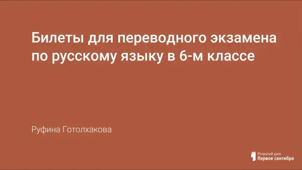В билеты для переводного экзамена по русскому языку включены теоретические вопросы (проверка знаний по курсу 6-го класса) и задания по развитию речи (подготовка к итоговому собеседованию). Отвечая на теоретические вопросы, обучающийся должен показать умение отбирать и систематизировать материал в соответствии с указанной темой; осмысленно пользоваться языковедческой терминологией; строить логически правильное и композиционно законченное связное высказывание; иллюстрировать свои ответ примерами.