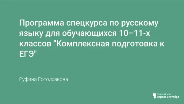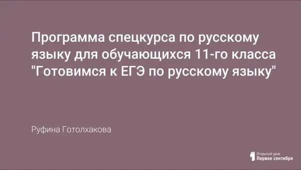 Цель спецкурса: эффективная подготовка обучающихся к успешной сдаче ЕГЭ по русскому языку; формирование орфографической и пунктуационной грамотности, навыков конструирования текста; практическое использование лингвистических знаний и умений, важных не только для подготовки к экзаменам, но и для дальнейшей деятельности выпускников, успех которой невозможен без хорошего знания русского языка.