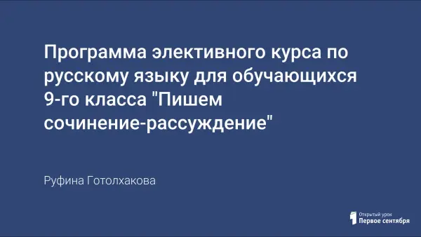Цель данного курса: научить обучающихся создавать письменное речевое высказывание в форме рассуждения на основе прочитанного текста или по заданной проблеме; подготовить девятиклассников к сдаче экзамена по русскому языку.