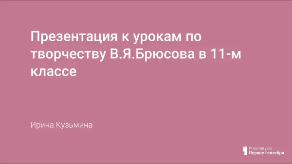 Презентация к урокам по творчеству В.Я.Брюсова в 11-м классе