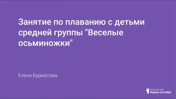 Как сделать, чтобы занятия в бассейне стали более интересными, увлекательными, развивающими. В этом нам помогло разработанное пособие «Веселые осьминожки», которое повышает интерес к занятиям и положительно влияет на развитие ребенка, улучшает его физическую подготовленность, способствует стимуляции активности и самостоятельности в двигательной деятельности. Цель занятия: создание условий для качественного формирования двигательных умений и навыков, способствующих повышению интереса к физкультурным занятия, через внедрение в практику нестандартное оборудование «Веселые осьминожки».