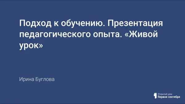 Подход к обучению. Презентация педагогического опыта. «Живой урок»