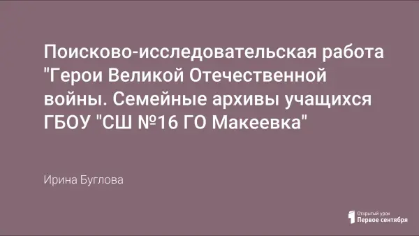 Поисково-исследовательская работа "Герои Великой Отечественной войны. Семейные архивы учащихся ГБОУ "СШ №16 ГО Макеевка"