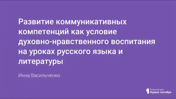 Развитие коммуникативных компетенций как условие духовно-нравственного воспитания на уроках русского языка и литературы