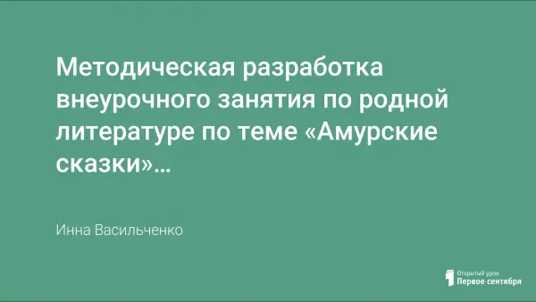 Методическая разработка внеурочного занятия по родной литературе по теме «Амурские сказки» Д.Нагишкина – хранилище народной мудрости и нравственных представлений о добре и зле народов Дальнего Востока (итоговое занятие)