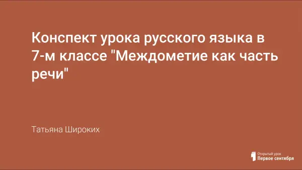 Цели урока: обучающиеся знают понятие «междометие» (морфологические признаки междометия; значение, правила пунктуации в предложениях с междометиями).