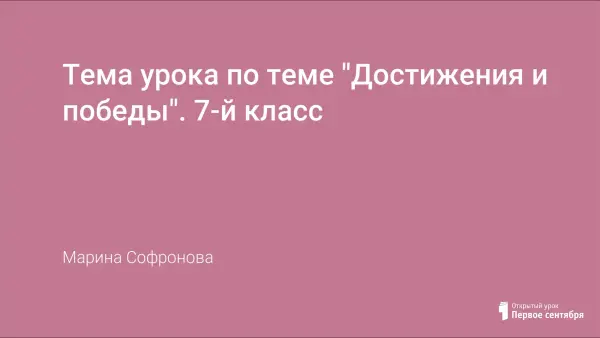 Урок общеметодологической направленности в 7-м классе по теме «Достижения и победы». Урок построен с учётом требований нового образовательного стандарта – на принципах системно-деятельностного подхода в обучении. На уроке используются деятельностные методы и способы обучения: выявление места и причины затруднения, построение проекта выхода из затруднения, реализация проекта, включение в систему знаний и рефлексия.
