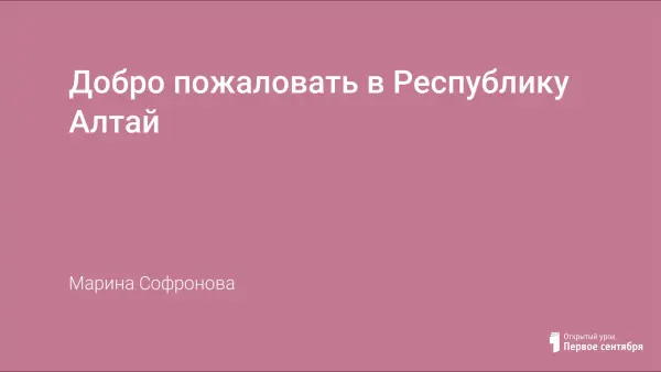 Урок «Добро пожаловать в Республику Алтай» – урок общеметодологической направленности. Урок построен с учётом требований ФГОС, на принципах системно-деятельностного подхода. На уроке предусмотрено использование интерактивных заданий на сайте Wordwall.net для актуализации и совершенствования лексических навыков по теме «Времена года» и «Погода» и грамматических навыков по теме «Условные предложения 1 типа».