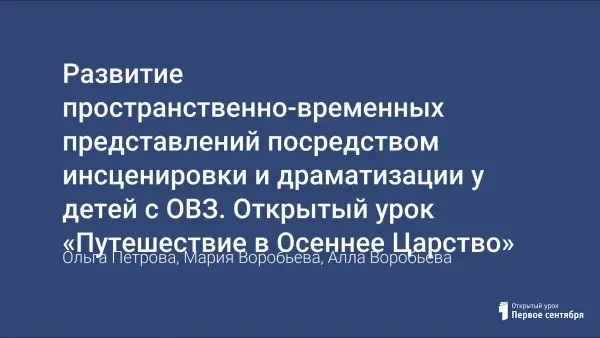 Одной из целей работы учителя-дефектолога, логопеда и педагога-психолога с детьми, нуждающимися в коррекционном сопровождении, является развитие базовых высших психических функций. Одной из задач для достижения поставленной цели является развитие пространственно-временных представлений. Мы предлагаем организовать мероприятие, которое будет интересным, запоминающимся, зрелищным и поможет детям установить причинно-следственные связи между явлениями, происходящими в природе осенью.