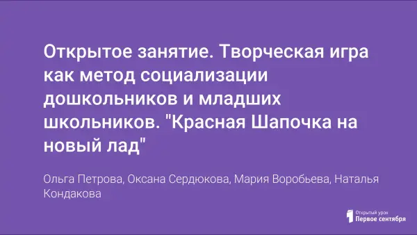 В игре дети учатся передавать образы героев, характеры действующих лиц, приобретают опыт общения, у них развиваются коммуникативные умения. Творческая игра наиболее полно формирует эмоционально-волевую сферу ребенка, поэтому являются важным средством воспитания и развития. Пример такой игры - сказочная история о Красной Шапочке и Сером Волке, только на новый лад. Участники игры знакомятся с сюжетом, выбирают роли, а взрослые помогают подготовить образ героя. Рекомендуется для детей 6–8 лет.