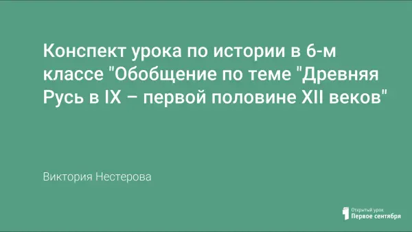 Цель урока: повторить, обобщить, систематизировать, закрепить имеющиеся у обучающихся знания по теме «Древняя Русь в IX – первой половине XII веков».