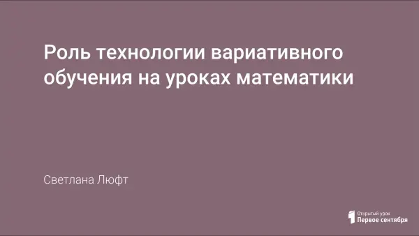 Цель работы: показать роль технологии вариативного обучения, разницу между заданиями на одном уроке при индивидуальном стиле педагогической деятельности педагога.