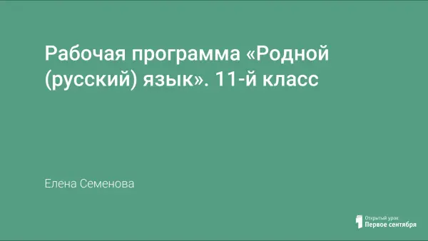Представлена Рабочая программа «Родной (русский) язык» для 11-го класса.