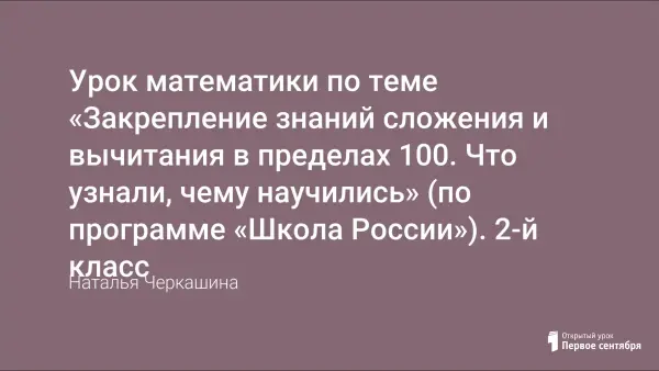 Цель урока: создать условия для совершенствования вычислительных навыков и умений решать задачи по теме «Сложение и вычитание в пределах 100».