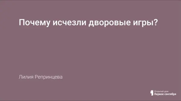 Цель статьи: анализ детских игр для формирования личности в будущем, роль дворовых игр в физическом воспитании и активности детей, описание игровой жизни детей в XX-м и на рубеже XX и XXI веков, отношение и привлечение внимания взрослых к разнообразному и здоровому развитию ребенка, извлечение положительных уроков из прошлого опыта.