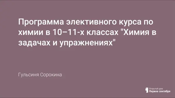 Особенностью данного курса является то, что занятия идут параллельно с изучением курса органической химии в 10-м классе, и с изучением курса общей химии в 11-м классе. Это даёт возможность постоянно и последовательно увязывать учебный материал курса с основным курсом, а учащимся получать более прочные знания по предмету. Программа курса послужит для существенного углубления и расширения знаний по химии, необходимых для конкретизации основных вопросов органической, общей и неорганической химии и для общего развития учеников.