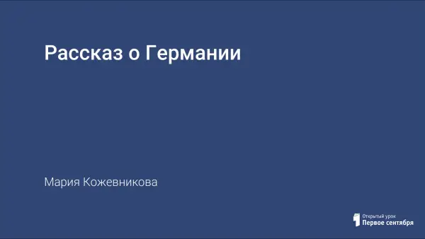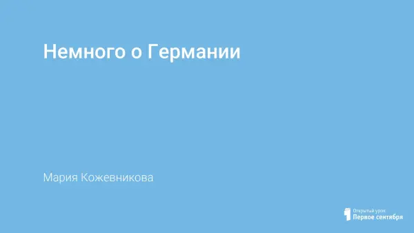 Федеративная Республика Германия — государство в Центральной Европе. Граничит с Данией, Польшей, Чехией, Австрией, Швейцарией, Францией, Люксембургом, Бельгией и Нидерландами. На севере границу образуют Северное и Балтийское моря. Германия является членом Европейского союза и НАТО, входит в «Большую восьмёрку».