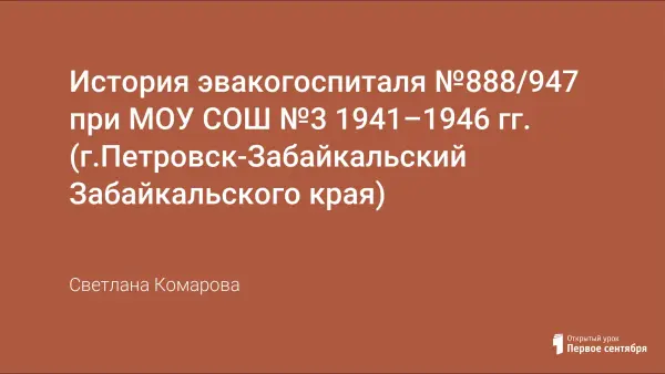 Представлена презентации об история эвакогоспиталя №888/947 в г.Петровск-Забайкальский Забайкальского края.