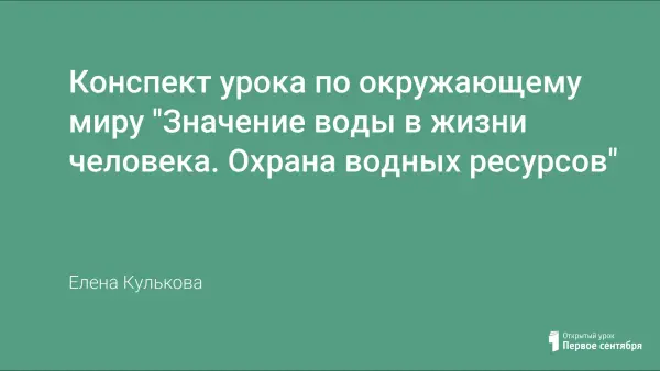 Цели урока: обобщить и расширить представления учащихся о значении воды в жизни человека и природы, закрепить знания учащихся о воде как веществе природы, находящемся в трёх состояниях; формировать представление о понятиях «экология, экологические знаки, экологическая катастрофа»; развивать любознательность, логическое мышление, воображение, речь, умение рассуждать и обосновывать свои суждения; воспитывать чувство бережного отношения к воде, как источнику жизни для всего живого, прививать детям навыки личной гигиены, ответственность каждого человека в решении экологических проблем.