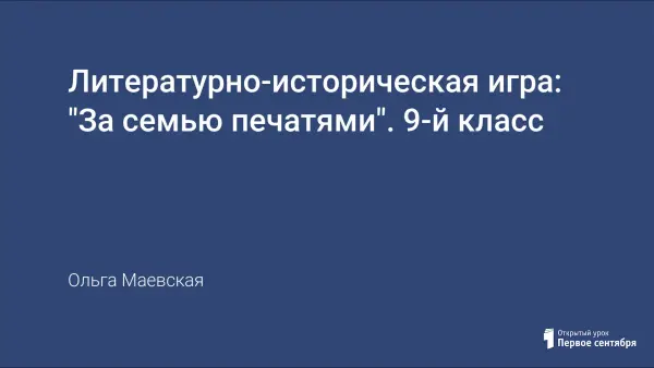 Данная игра построена по принципу популярной игры "За семью печатями", идущей на телеканале "Культура". Но, в отличие от телевизионной игры, в процессе нашей игры, отвечая последовательно на семь вопросов, связанных с жизнью и творчеством известного писателя, игроки разгадывают не его имя, а название литературного произведения данного автора.
