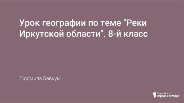 Урок знакомит с особенностями рек Иркутской области. На уроке различные виды работ: нанесение на контурную карту главных рек области, отвечают на вопросы, решают задачу, описывают Ангару по плану, отвечают на вопросы викторины. Формы организации работы: фронтальная, групповая (парная), индивидуальная. Широко используется краеведческий материал.