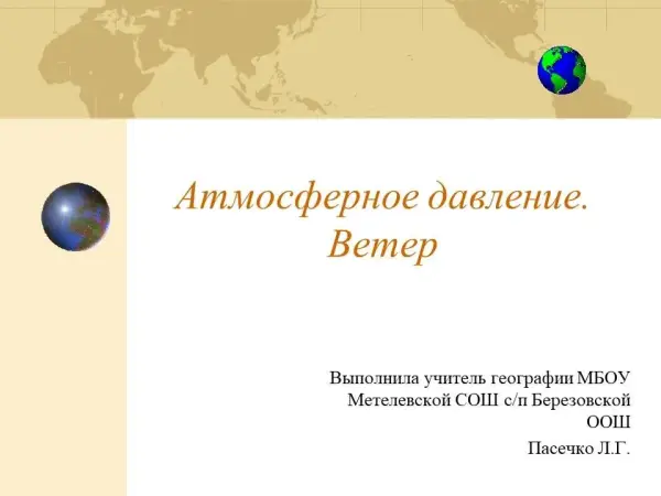 Цель урока: сформировать представления об атмосферном давлении, понятие «ветер», «бриз», «муссон», «роза ветров»; выяснить причины образования этих явлений, определить роль ветра в природе; сформировать умение строить розу ветров, развивать мировоззренческую идею о взаимосвязи различных явлений природы на примере связей между разницей атмосферного давления и силой ветра.