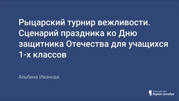 Проводится не совсем обычное соревнование – турнир рыцарей. Этот турнир посвящен Дню Защитника Отечества. Рыцари тоже были защитниками своего Отечества. Рыцари живут и среди нас. В нашем турнире примут участие ваши сверстники, знатоки правил вежливости и хорошего тона, смелые и ловкие.