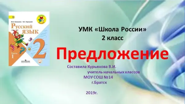Представлена презентация к уроку русского языка по теме "Предложение" для учащихся 2-го класса.