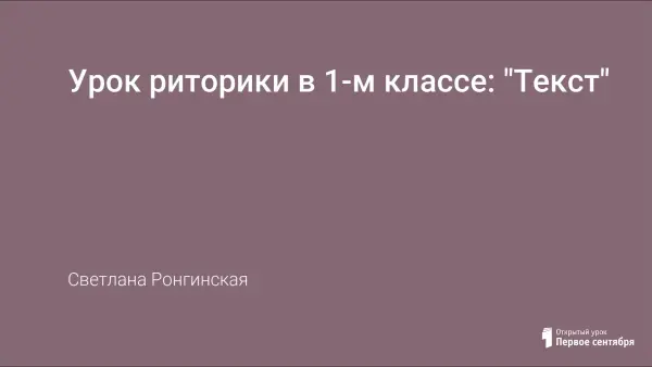 Основной задачей уроков риторики в начальной школе является развитие устной и письменной речи, их коммуникативной стороны. В связи с этим работа над текстом как единицей устной и письменной речи имеет важное значение. На данном уроке в I классе закрепляются понятия: "текст", "тема текста", "заголовок" через тренинг в групповой работе, где каждый ребёнок может проявить свою творческую индивидуальность.