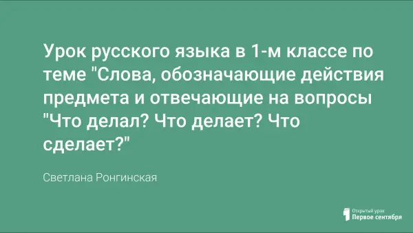 Урок направлен на получение первичных знаний о глаголе как части речи, его семантических группах. Все задания направлены на развитие обучающихся средствами субъективизации по методике Г.А. Бакулиной, доктора педагогических наук, профессора кафедры русского языка и методики его преподавания в начальных классах ВятГГУ.