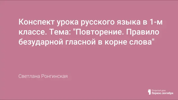 Самой проблемной орфограммой русского языка является безударная гласная в слове. Урок повторения правила правописания данной орфограммы в 1-м классе с применением средств субъективизации по методике доцента филологических наук ВятГГУ Бакулиной Г.А. позволит детям осмысленно овладеть и применять трудное правило на письме.