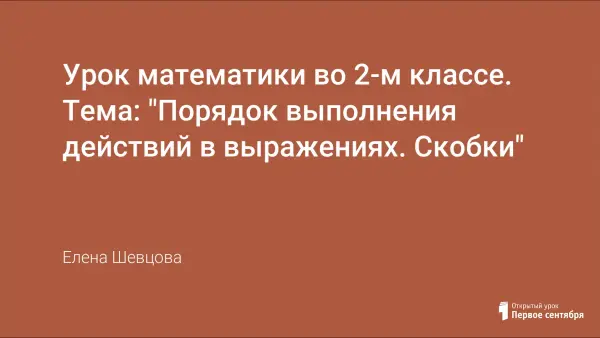 Цель урока: создать условия для формирования умения определять порядок действий в выражениях, использовать скобки.